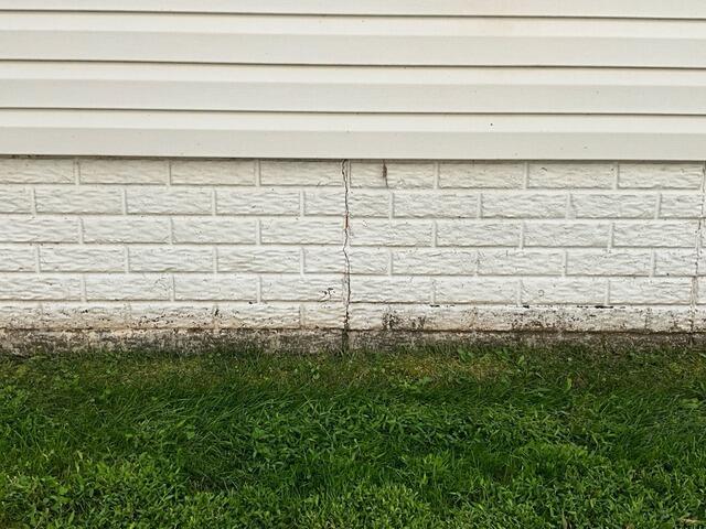 The image shows clear signs that the home was settling. Cracks along the foundation also allowed for water to seep into the basement.