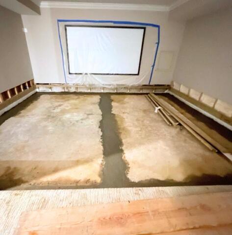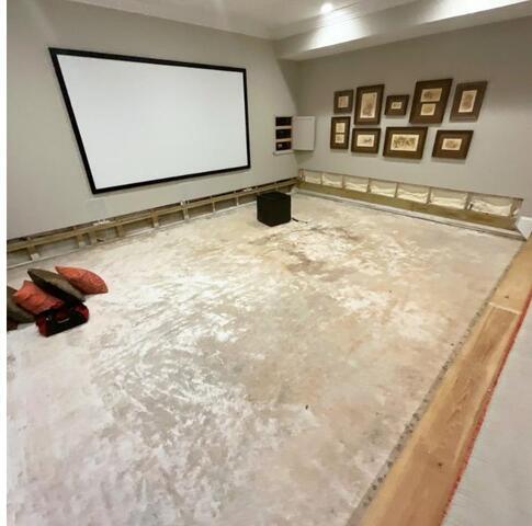 In Middleburg, VA, a homeowner was troubled by water intrusion under their basement movie theater, as you can see in the before photo. To address this, we installed our WaterGuard® system, which channels seepage into the TripleSafe™ sump pump, redirecting it effectively. Notice in the after photo how our discreet solution, nestled safely beneath the floor surface, ensures the basement remains dry and usable. Homeowners trust our non-clogging, reliable system for a worry-free, clean space. We're committed to solving challenging waterproofing issues without disrupting the aesthetics of the home.