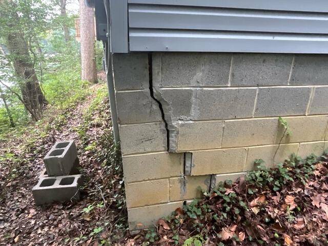 This photo highlights a common foundation issue in Hollywood, MD: visible stair-step cracks forming along a basement block wall. The pattern of these cracks signals ongoing foundation settlement, a concern for homeowners in the area. The separation between blocks is often an early warning sign of shifting or settling foundations that may compromise structural stability. Stair-step cracks are a key indicator to watch for when inspecting homes for potential foundation settlement in Maryland.